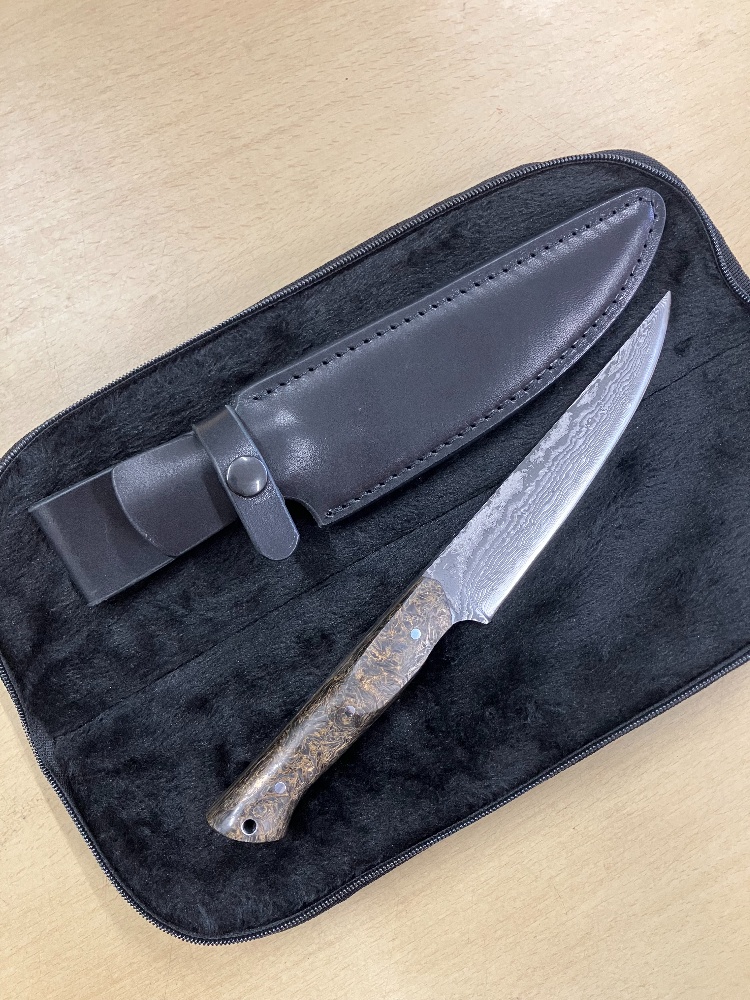スタビライズドウッドやカラフルな樹脂系ハンドルなどこれまでとは少しテイストを変えて作ってみました